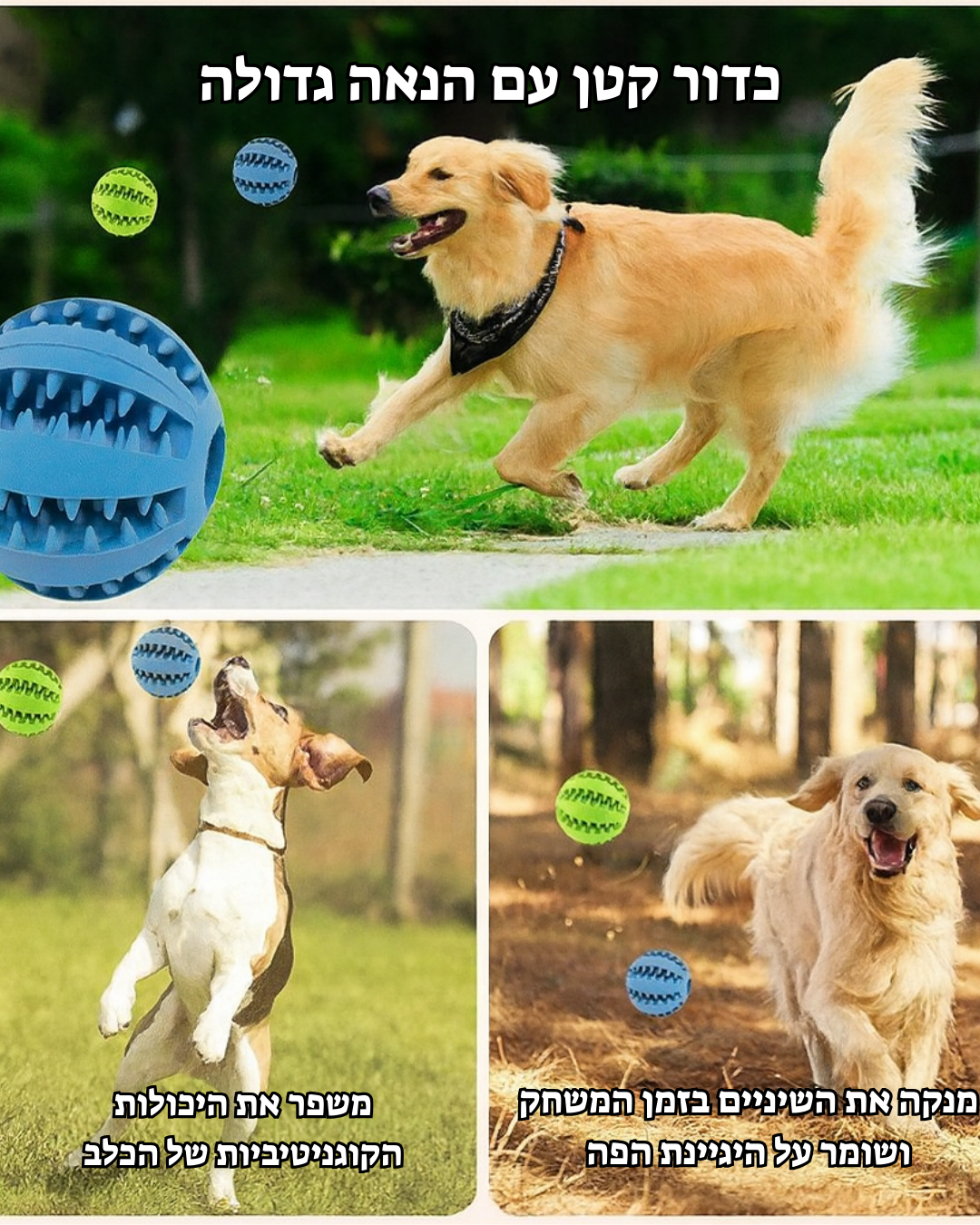אפילו כלבים גדולים עם כדורי לועס אגרסיביים (קוטר כדור: 5/7 ס"מ).