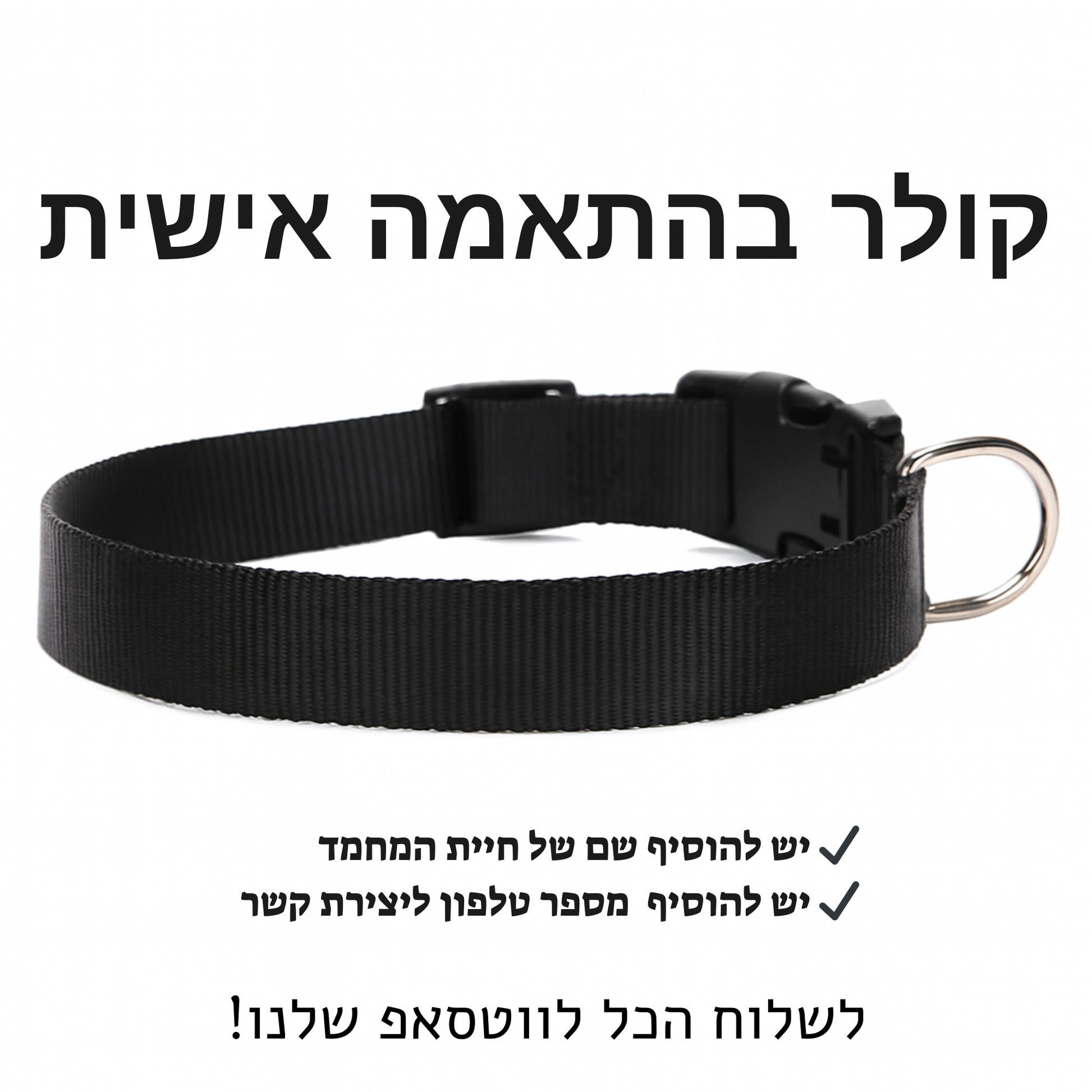 אז אלון קנה את הקולר הזה עם השם והמספר שלו בהדפסה ברורה. שבוע אחרי זה, לקסי שוב ברח - והפעם מישהו התקשר אליו תוך חצי שעה! כולם ייכלו לראות מיד למי הכלב שייך. אלון סוף סוף ישן בשקט! 🏷️